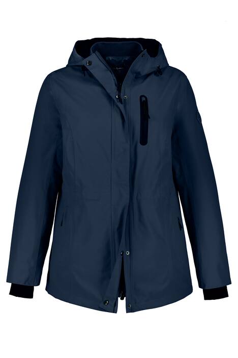 Funkční bunda - outdoorová bunda s bundou prošívanou, z nichž každou lze nosit i samostatně. Funkční outdoorová bunda: nepromokavá, větruodolná, prodyšná. Kapuce, skrytý dvoucestný zip, 3 kapsy na zip, dlouhé rukávy. Prošívaná bunda: lehká a teplá, s límečkem, zipem a 2 kapsami na zip. Dlouhé rukávy.