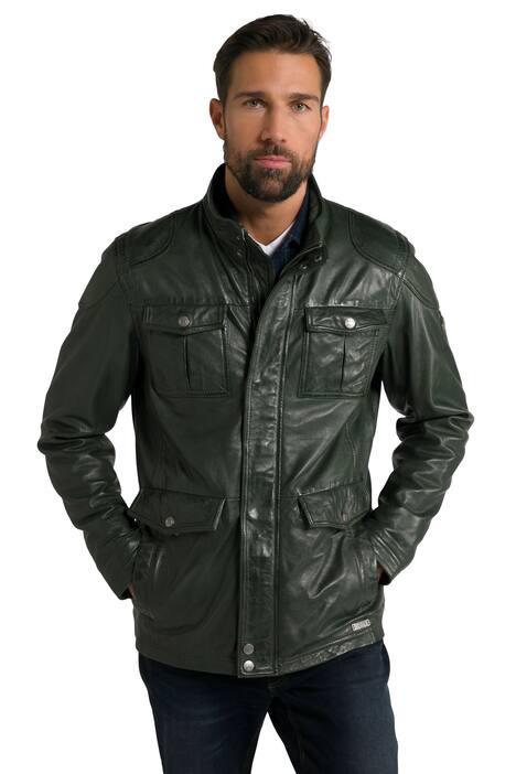 Kožená polní bunda z jehněčí nappa kůže. Vybavení pro muže: Stojáček, skrytý zip, prostorné kapsy s klopami. Nastavitelný lem a manžety. Maskáčová podšívka s kapsami. Testovaný střih Vás přesvědčí i ve velkých velikostech. JP1880 – pouze pro skutečné muže!