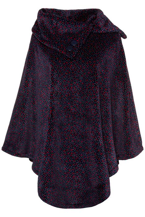 Red Dot Fleece Poncho - perfect for snuggling on those chilly winter evenings. Asymmetric stand-up collar with decorative buttons, closed side seams, and rounded handkerchief hem.
