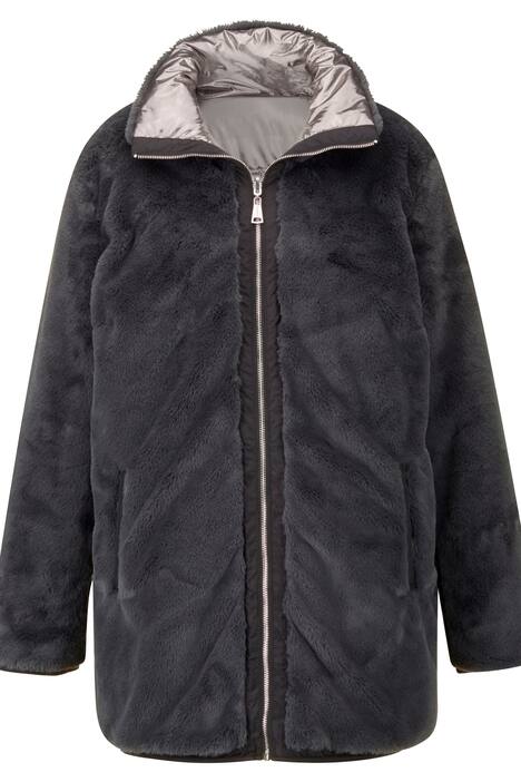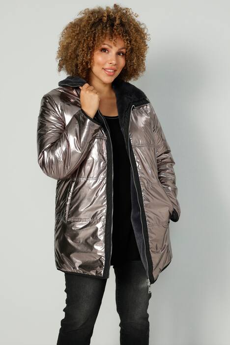 Wendejacke - Metallic-Look und weicher Webpelz. Stehkragen, Zipper, 2 Taschen.