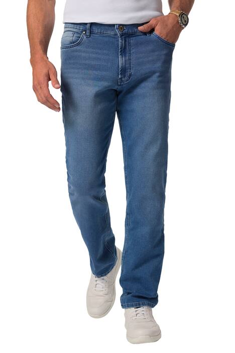Džíny Boston Park, břišní střih - sedí vpředu níže. Sed a zapínací pásek jsou zkrácené, nic netlačí ani neškrtí. Pro opravdové muže s bříchem. Autentické provedení s 5 kapsami. Pas s bočními elastickými vsadkami, poutky na opasek, knoflíkem a zipem. Normální střih: Normální šířka stehen a nohou, normální šířka spodního lemu. Naše osvědčená klasika by neměla chybět v žádném šatníku. Díky podílu elastanu jsou kalhoty super pohodlné a odolné. Pohodlný střih a perfektní tvar při každém pohybu. Boston Park – stylový v každé velikosti. Náš nový, kompletně přepracovaný střih Vás přesvědčí.