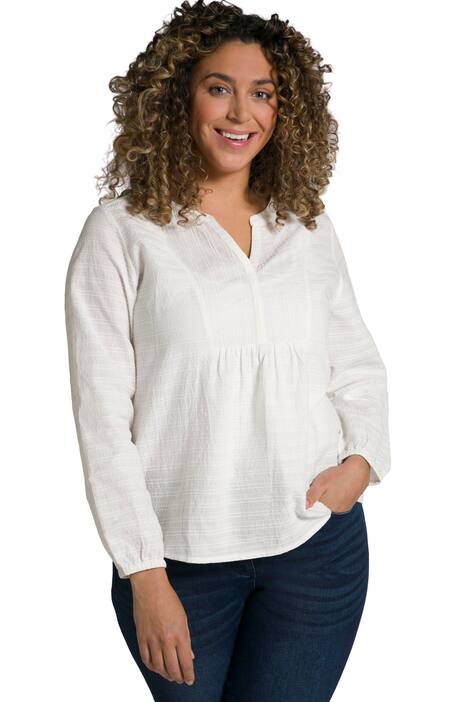 Tunika, A střih, s jemnými pruhy. Otevřený stojáček, dlouhé rukávy s elastickým zakončením. Zaoblený lem, vzadu asi o 4 cm delší.