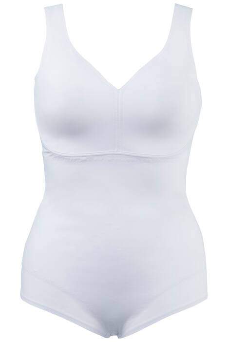Bodysuit in light material, with practically invisible seams that shape and form your body offering unparallelled comfort and a flawless appearance. Adjustable straps and hook and eye closure at crotch.
