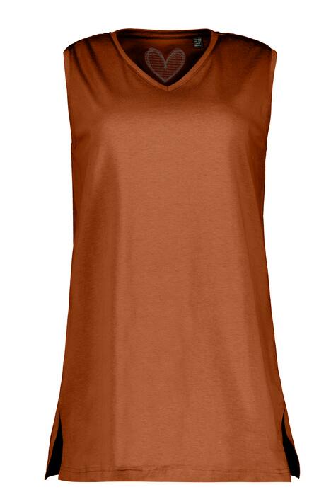Basic top osvědčeného střihu z měkké bavlny. Top s malým výstřihem do V, širokými ramínky pro vysoký komfort nošení. Boční rozparky. OEKO-TEX.