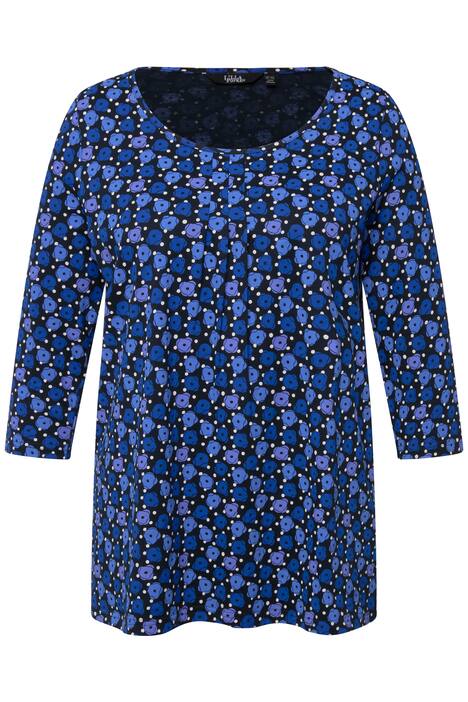 Tričko, A střih, s drobným květovaným vzorem. Výstřih do V s ozdobnými sklady. 3/4 rukávy.